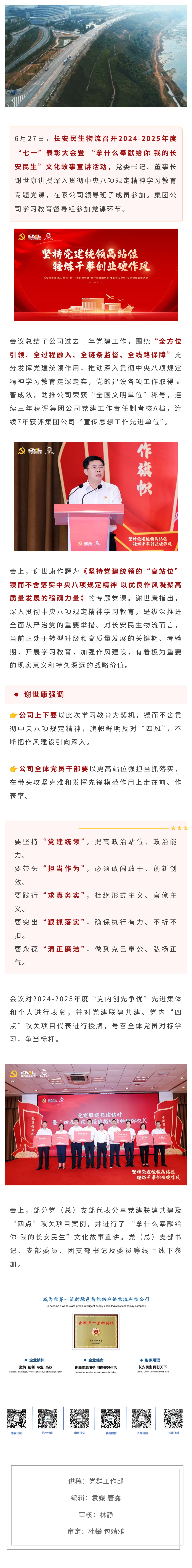 长安民生物流召开2024-2025年度“七一”表彰大会